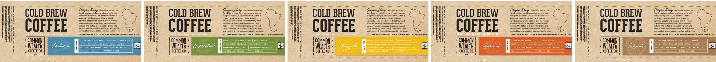 Design deliverables included, but were not limited to: bottle labels, cold brew bag label, food truck menu with inter-changeable “on tap” flavors, sell sheets for wholesale, informational postcards for customers, brewed in Boston logo and coffee trike wrap.